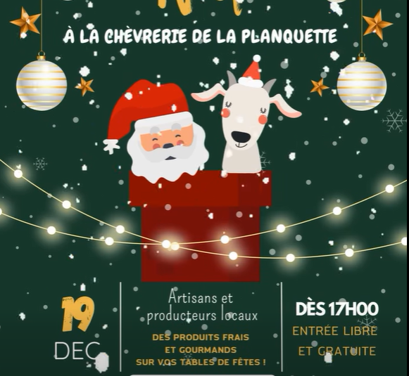 À propos Retour à la liste Venez découvrir le marché de Noël à la Chèvrerie de la Planquette ! Des artisans et producteurs locaux vous proposeront des produits frais et gourmands pour embellir vos tables de fêtes