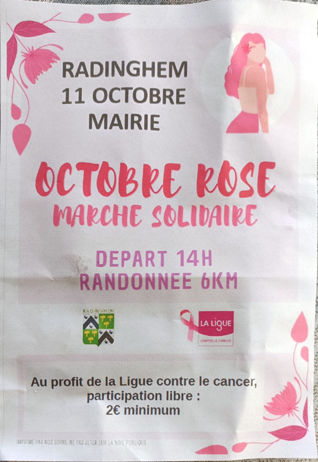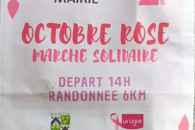 À propos Retour à la liste Marche solidaire à Radinghem le samedi 11 octobre à 14h, 6km de randonnée.Au profit de la ligue contre le cancer
