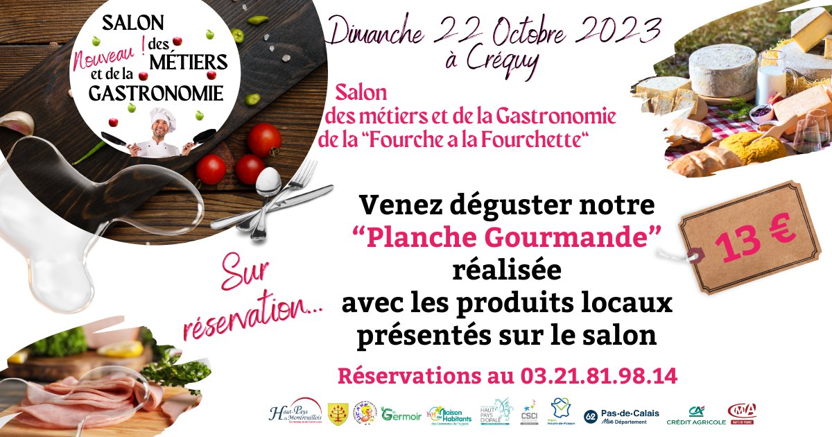À propos Retour à la liste La CCHPM, en collaboration avec l'UCAFE, la Maison des Habitants, l'Office de Tourisme Haut-Pays Côte d'Opale, le CSCI, le Germoir et la commune de Créquy, organise son Salon de la Gastronomie à Créquy le vendredi 17 et le dimanche 19 octobre 2025De nombreuses animations sont au programme de ces deux journées, comme le concours du meilleur pâtissier, des concerts, expositions et le marché des producteurs locaux.