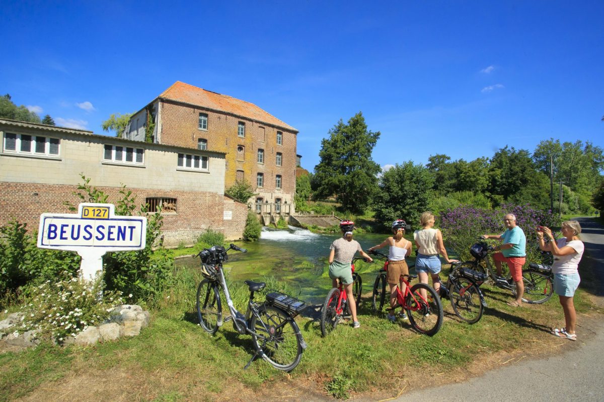 Entre Etaples et Montreuil-sur-Mer, Beussent est un charmant petit village traversé par la rivière de la Course et au cœur d’une verdoyante vallée. Ce village était à l’origine un prieuré érigé par les comtes de Boulogne au XIIème siècle. Au-delà de son charme campagnard pittoresque, c’est la suave odeur du chocolat qui va vous attirer dans le sillage de sa célèbre chocolaterie artisanale. Les pépites du patrimoine de Beussent Le moulin de BeussentPlace de la mairie, trône le vieux moulin Caron. Bâti au XVIIIème siècle, c’était à l’origine un moulin à farine. Au milieu du XIXème siècle, il est transformé en moulin à huile. Il fermera ses portes dans la deuxième moitié du XXème siècle. Aujourd’hui, il a perdu sa roue à aubes mais demeure un monument emblématique du village.L’église Saint-Omer de BeussentBâtie sur les fondations de l’ancienne église qui s’est écroulée en 1873, l’église de Beussent a été construite par l’architecte hesdinois Clovis Normand, qui s’est inspiré du style architectural de Violet Leduc. Dédiée à Saint-Omer, l’église présente quelques spécificités comme ses baies à deux ou trois formes surmontées d’un oculus polylobé qui font référence aux modèles architecturaux du XIIème siècle. C’est aussi l’une des rares églises du Haut-Pays d’Opale pourvue d’un transept.Le saviez-vous ?Durant la Seconde Guerre Mondiale un avion anglais s’est écrasé sur l’église. Les habitants cachèrent le pilote qui avait survécu à l’accident.La chapelle d’EngoudsentLa chapelle d’Engoudsent a été fondée en 1177 par les Sires de Montcavrel. Engoudsent était l’une des douze baronnies du Boulonnais.Le saviez-vous ?Mise en service en 1893, la ligne d’Aire-sur-la-Lys à Berck Plage qui passait par Beussent a été fermée en 1955. La gare a été reconvertie en mairie et agence postale de la commune.Beussent et sa chocolaterieCélèbre dans toute la région et bien plus encore, la chocolaterie artisanale de Beussent a été créée en 1985 par les frères De Ricq qui ont ouvert depuis pas moins de 24 boutiques. En 1994, ils ouvrent une seconde chocolaterie dans l’Oise, à Lachelle. Les ateliers de Beussent qui peuvent se visiter reçoivent des milliers de touristes par an. En 2004, la chocolaterie de Beussent-Lachelle reçoit la médaille de bronze du tourisme. Elle est sélectionnée par les guides michelins.Visitez la chocolaterie de BeussentLes itinéraires de randonnée à BeussentLa randonnée des lacs d’amourRando cycliste de 30 kmDépart Route de Boulogne à Neuville-Sous-Montreuil. Vous suivrez la vallée de la Course, puis la vallée des Baillons, pour passer ensuite dans la forêt de Montcavrel. Le circuit est agréable, proposant une traversée par les villages fleuris en bordure de rivière qui serpente dans la campagne Lire plus Parenty Lire plus Enquin sur baillons Lire plus Clenleu découvrez aussi les villages proches de Beussent