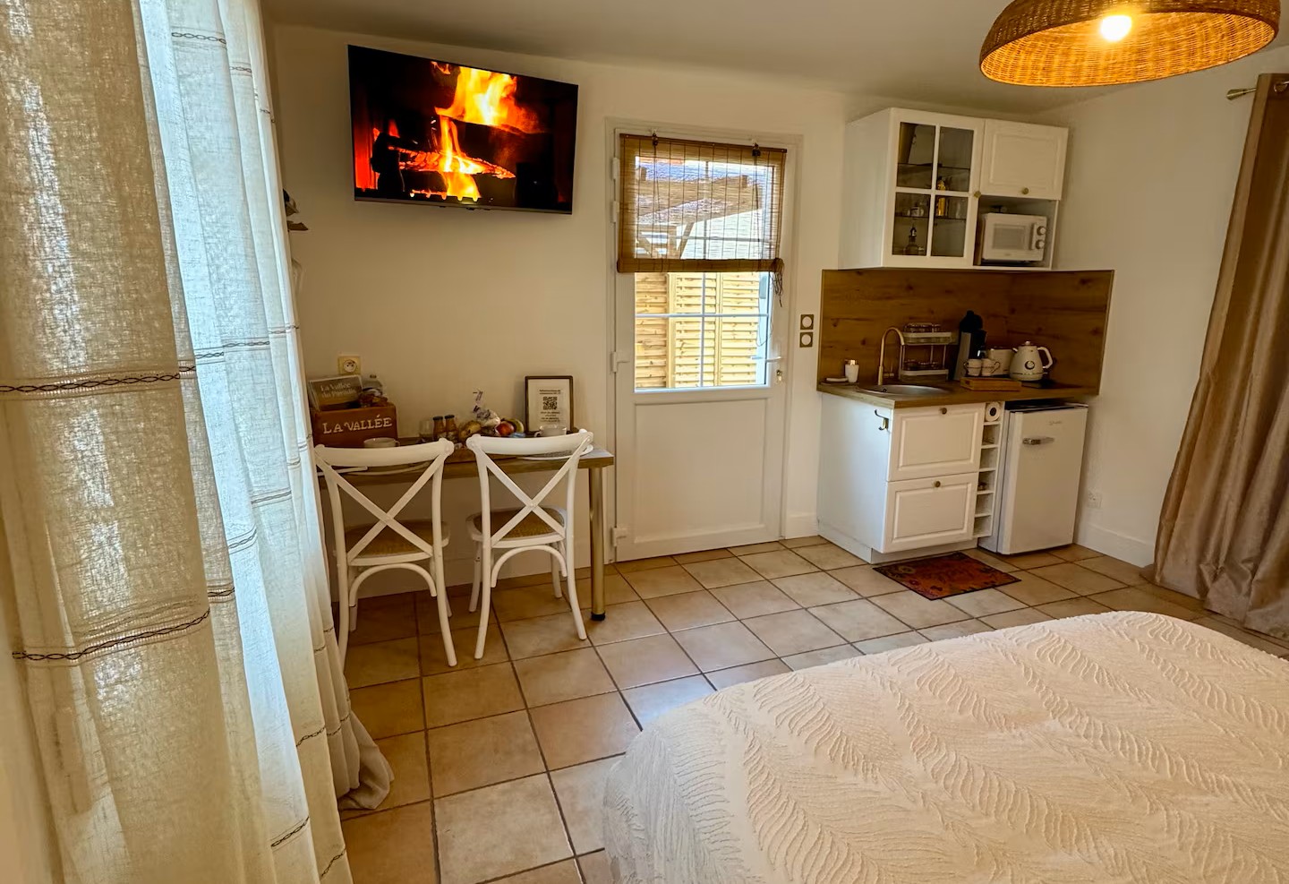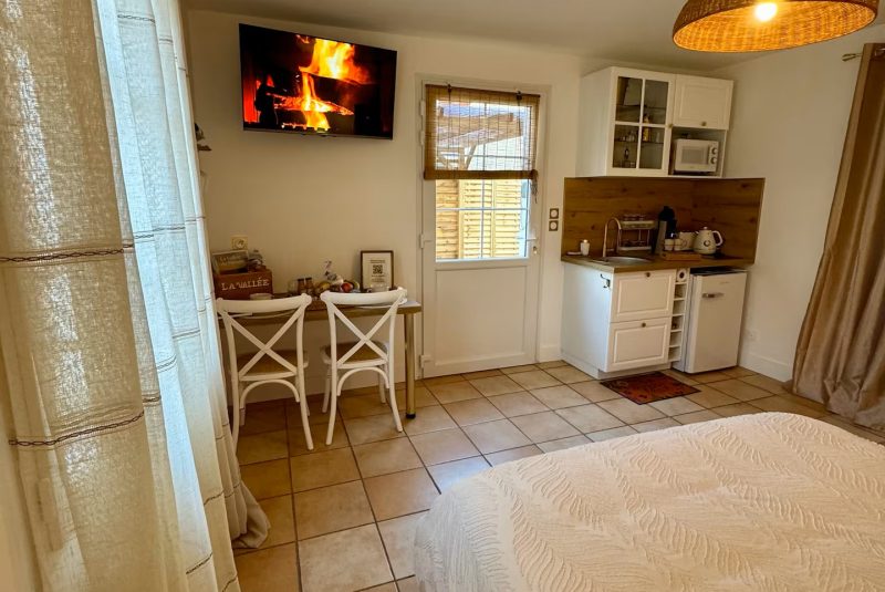 11 À propos Capacité Tarifs Prestations À proximité Retour à la liste Au coeur du Haut-Pays d'Opale, profitez d'un séjour en amoureux dans ce studio de charme. Piscine chauffée, balnéothérapie, jardin et terrasse avec vue imprenable sur la vallée... tout est réuni pour une expérience authentique et ressourçante. Capacité 1 chambre(s) 2 personne(s) Tarifs Tarif Min. Max. Nuitée 90€ 130€ Nuitée : de 90€ à 130 € Moyens de paiement Carte bleue Cheques bancaires et postaux Espèce Paiement en ligne Prestations Ping-Pong Sentier de randonnée Baignoire Câble / Satellite Canal+ Congélateur Cuisine - coin cuisine Douche Draps et linges compris Environnement naturel valorisé Four micro-ondes Réfrigérateur Sèche cheveux Toilette séparée WIFI Encadrement " Randonnée pédestre " Abris pour vélo Balnéothérapie / Spa / hamman / Jacuzzi / Sauna Barbecue Jardin Parking Piscine Chauffée Salon de jardin Terrasse Documentation Touristique Nettoyage / ménage en fin de séjour Ouverture 24/24