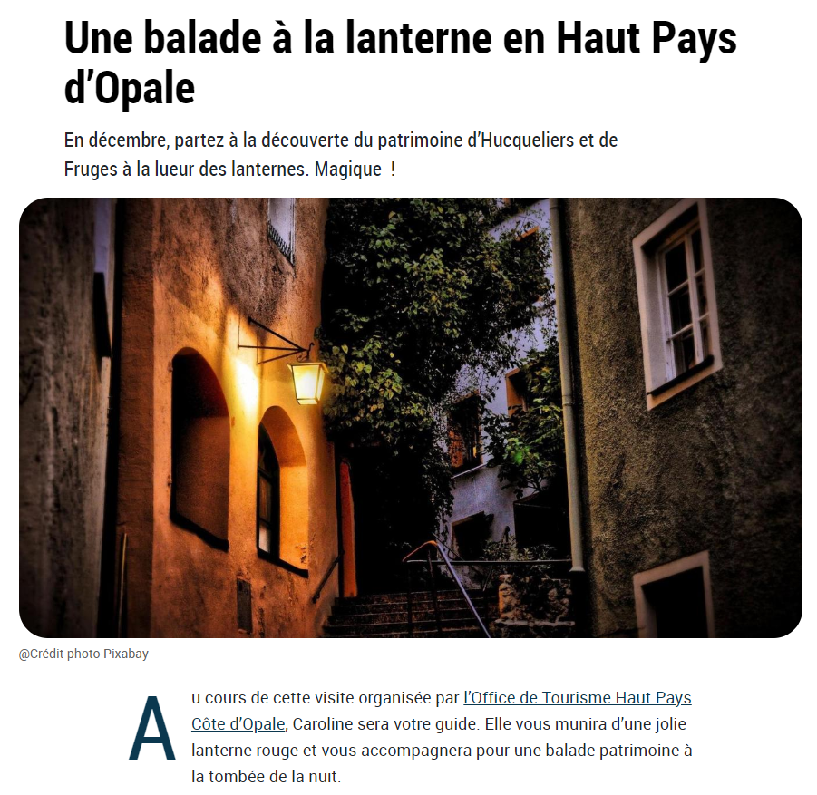 Une balade à la lanterne en Haut Pays d’OpaleArticle du Magazine Tendance & COL’Office de Tourisme Haut-Pays Côte d’Opale vous emmène au salon Internationnal de l’AgricultureArticle du Magazine Tendance & COUn nouveau jeu de piste familial pour découvrir Enquin-sur-BaillonsArticle du Magazine Tendance & CO